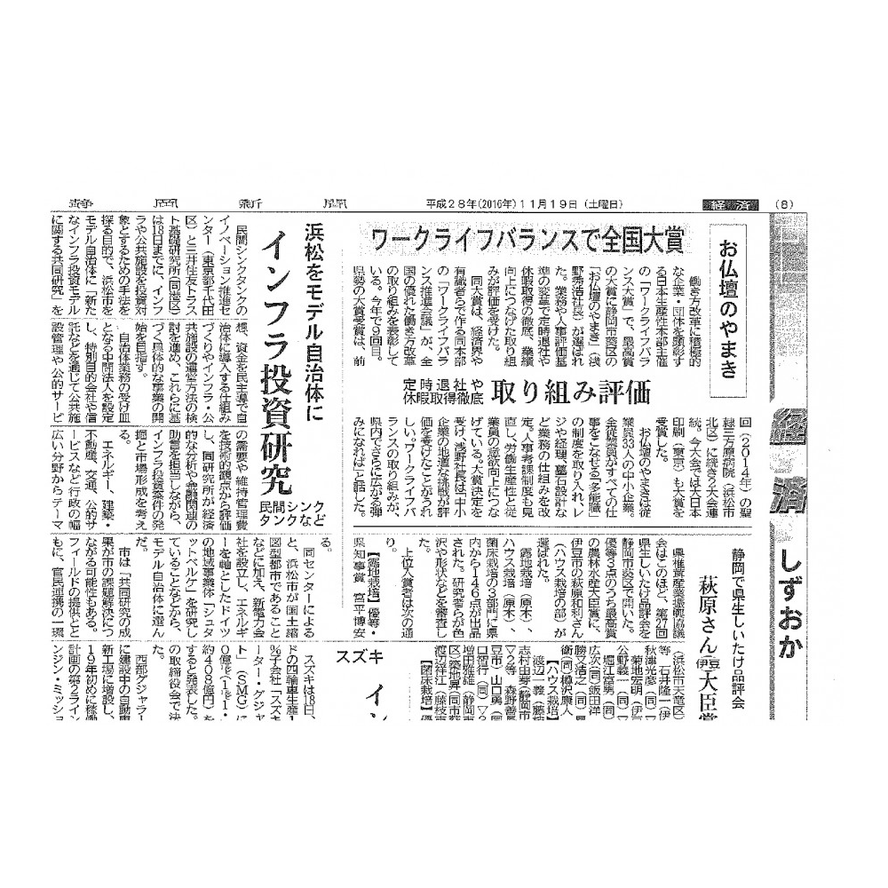 日本生産性本部が主催する「ワークライフバランス大賞」の全国大賞にお仏壇のやまきが選ばれました。前回(第8回)は浜松の「聖隷三方原病院」が大賞を受賞しているので静岡県勢は2年連続の受賞となります。