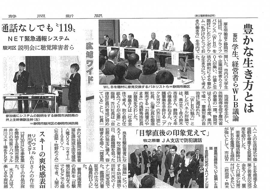 静岡新聞に厚生労働省・静岡市のシンポジウムで登壇した浅野社長が掲載されました