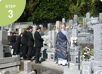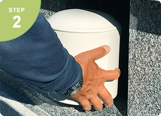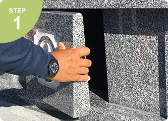 墓石の地下にあるカロート(遺骨を納める納骨室)のフタを開けます -